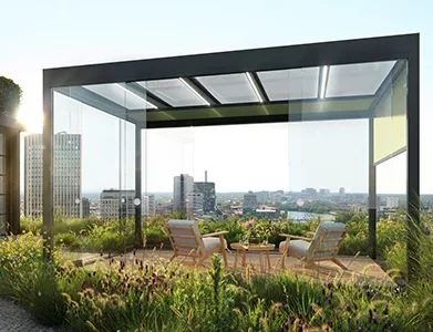 Mit einem Lamellendach gewinnen Sie ein stabiles Überdachungssystem, das Schatten spendet, Sie vor Wind und Regen abschirmt und sich zugleich unkompliziert Bedienen lässt.